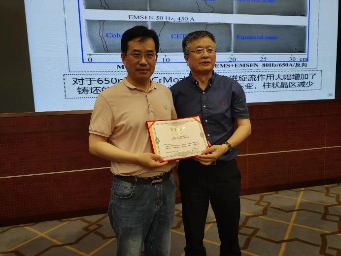 王强教授做《电磁冶金新技术对高品质钢连铸过程的多级调控及其对铸坯凝固组织的影响》报告