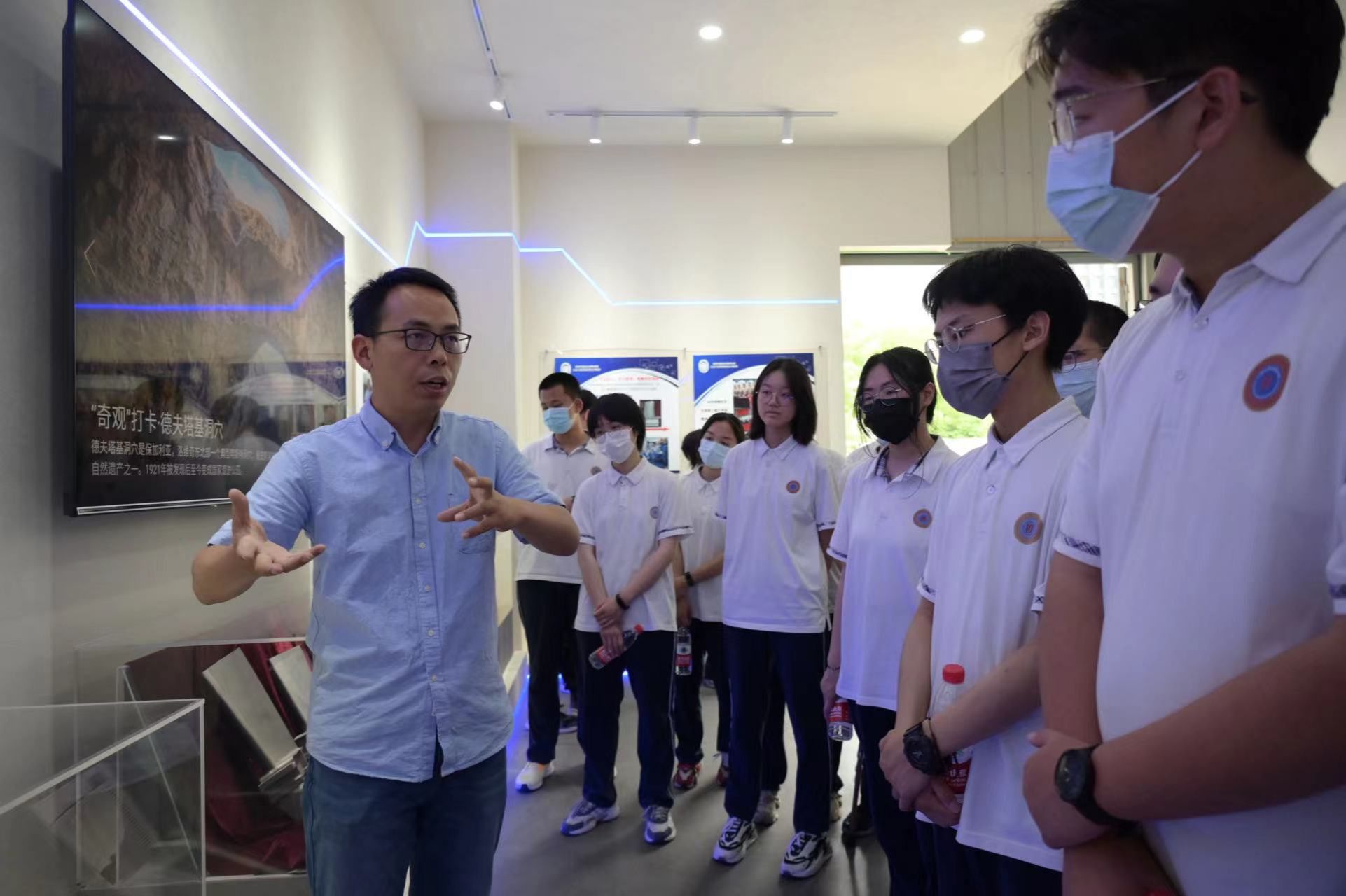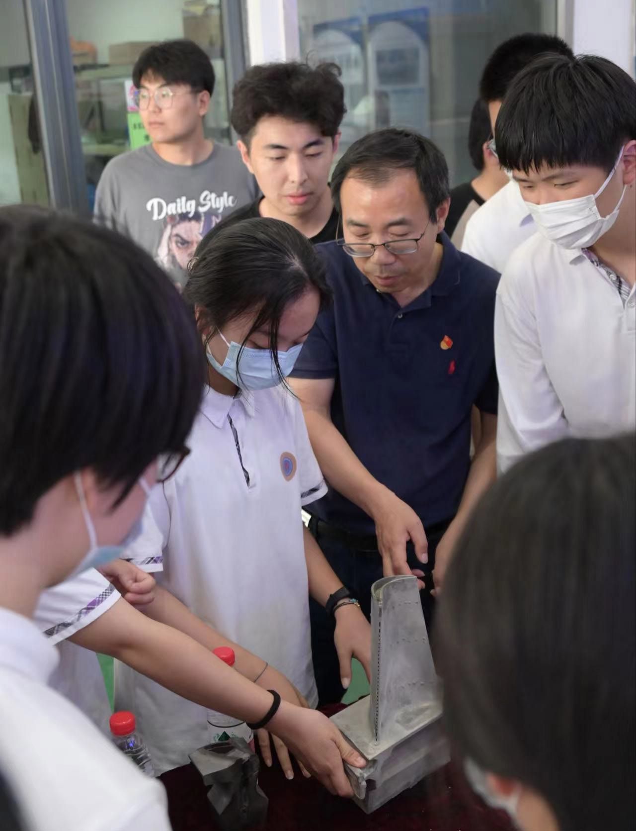 交流结束后,与会师生共同来到叶片中心展览大厅,宣传委员王保军同志结合精心编辑的视频资料,向上大附中师生讲解飞机叶片的详细制作工艺流程,令师生近距离接触高科技科研产品。张振强同志带领师生参观叶片中心中试车间,从实验室的重大设备、仪器以及用途、主要研究方向、所承担的重大课题研究项目等情况展开讲解。