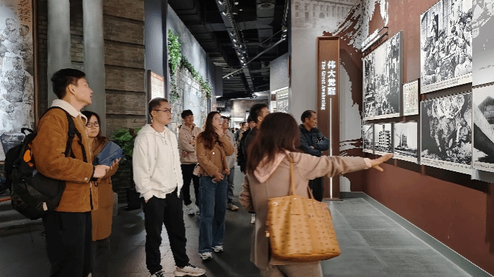 纪念馆内,从中国近代史、中国革命史到社会主义建设和改革开放时期,一幅波澜壮阔的历史画卷徐徐展开。“虎门销烟”、“开国大典”、“嘉兴火车站”、“三大战役”、“上海石库门”、“鸳湖旅馆”、“北大红楼”、“巴黎公社”等等复原场景,让在场师生回首感受那激情澎湃的一刻。共产党员宣言、五四爱国运动资料、战士们戴过的围巾、穿过的草鞋、用过的食盒,一幕幕场景仍历历在目。