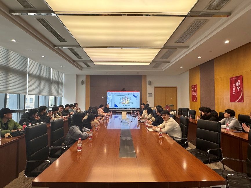 参观结束后,22级材料所研究生第一党支部与728院材料研究室党支部开展了一场分享座谈会。“分享座谈”环节分四步骤进行。首先材料研究室技术研究组长曾奇锋向同学们概述企业的基本情况,展示公司的基本情况,历史沿革、所获成就、部门构成等基本情况,随后又对公司具体情况做了一个总体介绍并展示了公司的业务体系及核心能力。