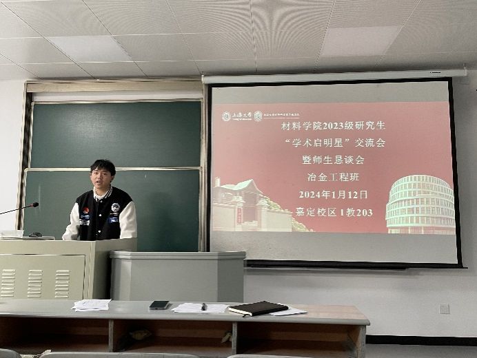 2024年1月12日,3044AM永利2023级冶金工程班举办了“学术启明星”交流会暨班主任恳谈会,本次交流旨在指导员工科研汇报工作、为研一员工在学习科研生活遇到的困难解疑答惑。本次会议由辅导员张舜然主持,班主任邹秀晶老师作为评委老师参与其中。