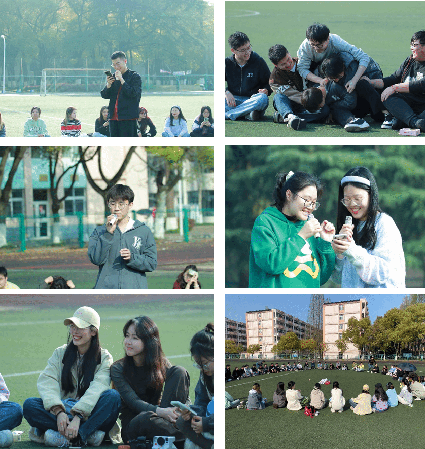 最后一部分为“击鼓传花”,击鼓传花”传的是一种精神,一种团结一致、激扬向上的精神,一种相互激励、相互竞争的风气,一种敢为人先、虽败犹荣的意志,一种虚怀大度、君子坦荡荡的品质。花落谁家,谁的微笑最动人,而不是花落谁家,谁泪涟涟,心怯怯两个班级前往足球场,围成圆圈坐下,其中一人拿着一个物件,一人播放1min音乐,音乐响起,众人开始依次传花,音乐停止,此时物件在谁手上,就需要表演。在此环节中大家热情高涨,展示了材料学子积极向上的青春风采和精神面貌。