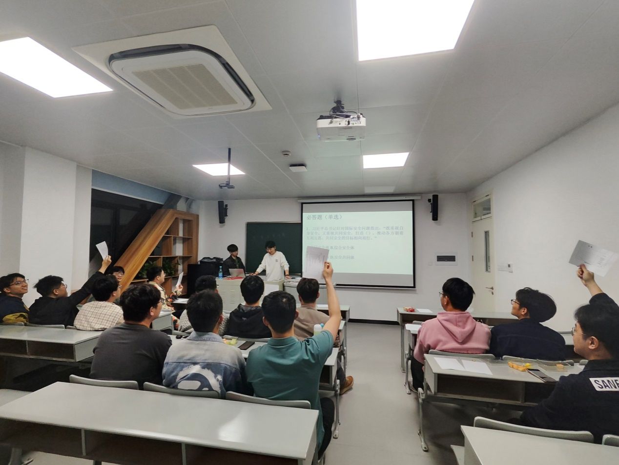 国家安全是民族复兴的根基,社会稳定是国家强盛的前提。为全面宣传贯彻总体国家安全观,不断增强广大学子国家安全意识和素养,营造浓厚的国家安全知识学习氛围,增强同学们识别与防范安全风险的能力,为校园安全防线的构建贡献青年力量,2024年4月22日,2023级材工系研究生第二党支部以“总体国家安全观,创新引领10周年”为主题,开展了国家安全知识竞答比赛。比赛由支部书记程浩宇负责主持。