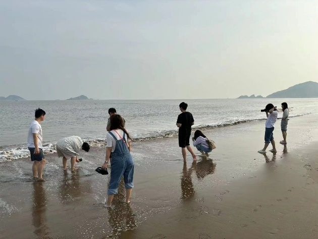 活动当天,同学们怀着激动的心情踏上了前往嵊泗的旅程。在这片美丽的海岛上,大家暂时放下了学业的繁重,尽情享受大自然赋予的宁静与美好。海风轻拂,海浪拍岸,同学们漫步在金色的沙滩上,欢声笑语充满了整个海滩。