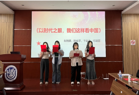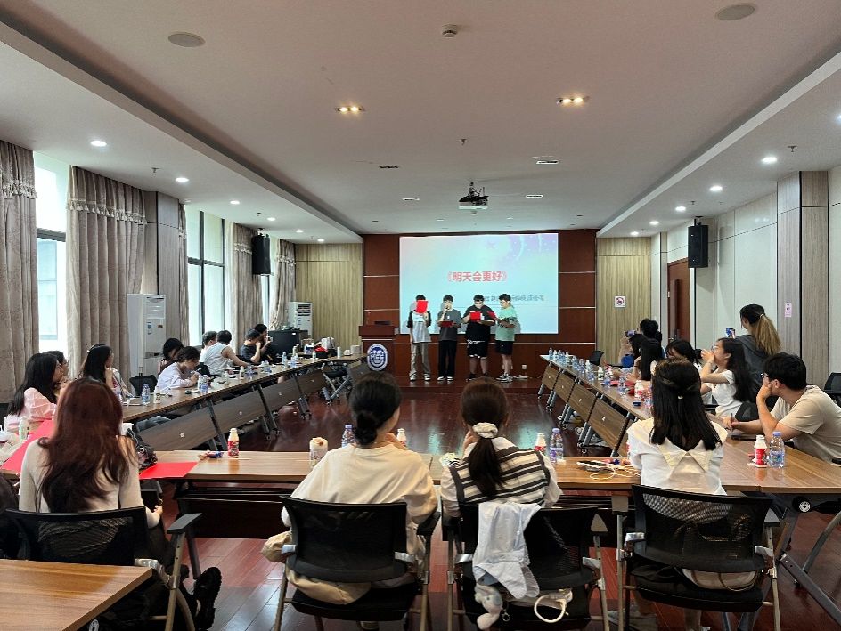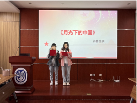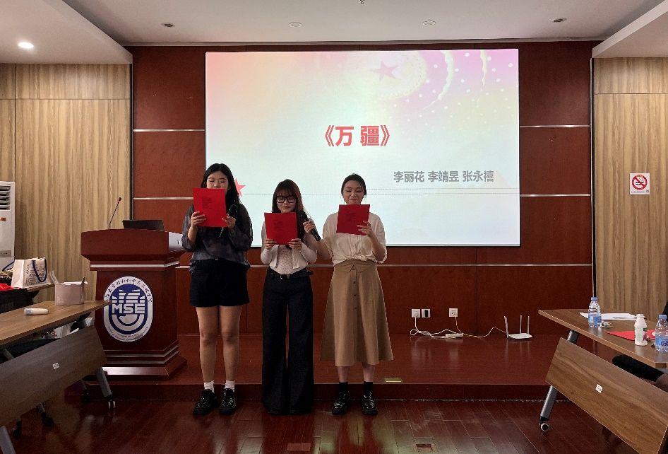 接着,活动进入“红歌合唱”与“诗歌朗诵”环节,同学们都积极报名参与活动。首先是王延辉、唐修儒、薛峥嵘、赵虎伟同学的倾请献唱《明天会更好》,歌词中充满了对未来的自信,饱含着我们的国家就像这首歌一样,越来越发达,越来越昌盛,未来将更加的美好!其次,是张祺与许励同学带来的诗歌朗诵《月光下的祖国》,追思起祖国历史长河中的点滴片段,让在座的同学们深刻感受到仿佛有婉约的长亭道别、豪放的英雄报国、昔日的红袖添香以及今时的车水马龙,一轮柔美的明月仿佛见证了国家和民族的一路走来,带着满满发自内心的自豪和感激之情。李丽花、李靖昱、张永禧同学怀揣激动滚烫的心情演绎《万疆》,好似一道跨越山河岁月的红色霞光,她们的歌声沉稳且包含深情,一种爱国之情也在朗朗旋律中油然而生。最后,由卞启玉、左艳麟、陆应平、何凝萱四位同学带来一首《以时代之眼,我们这样看中国》诗歌,风雨苍黄百年路,高歌奋进新征程,她们用铿锵有力的声音诠释了对祖国的爱,