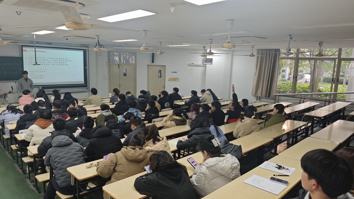 同学们认真聆听、详细记录,并结合自身专业与研究方向,展开了热烈的讨论。大家纷纷表示,作为新时代的研究生,应该紧跟国家发展战略,将个人的学术研究与国家需求紧密结合,在科技创新和就业创业中发挥先锋模范作用,为推动国家高质量发展贡献力量。