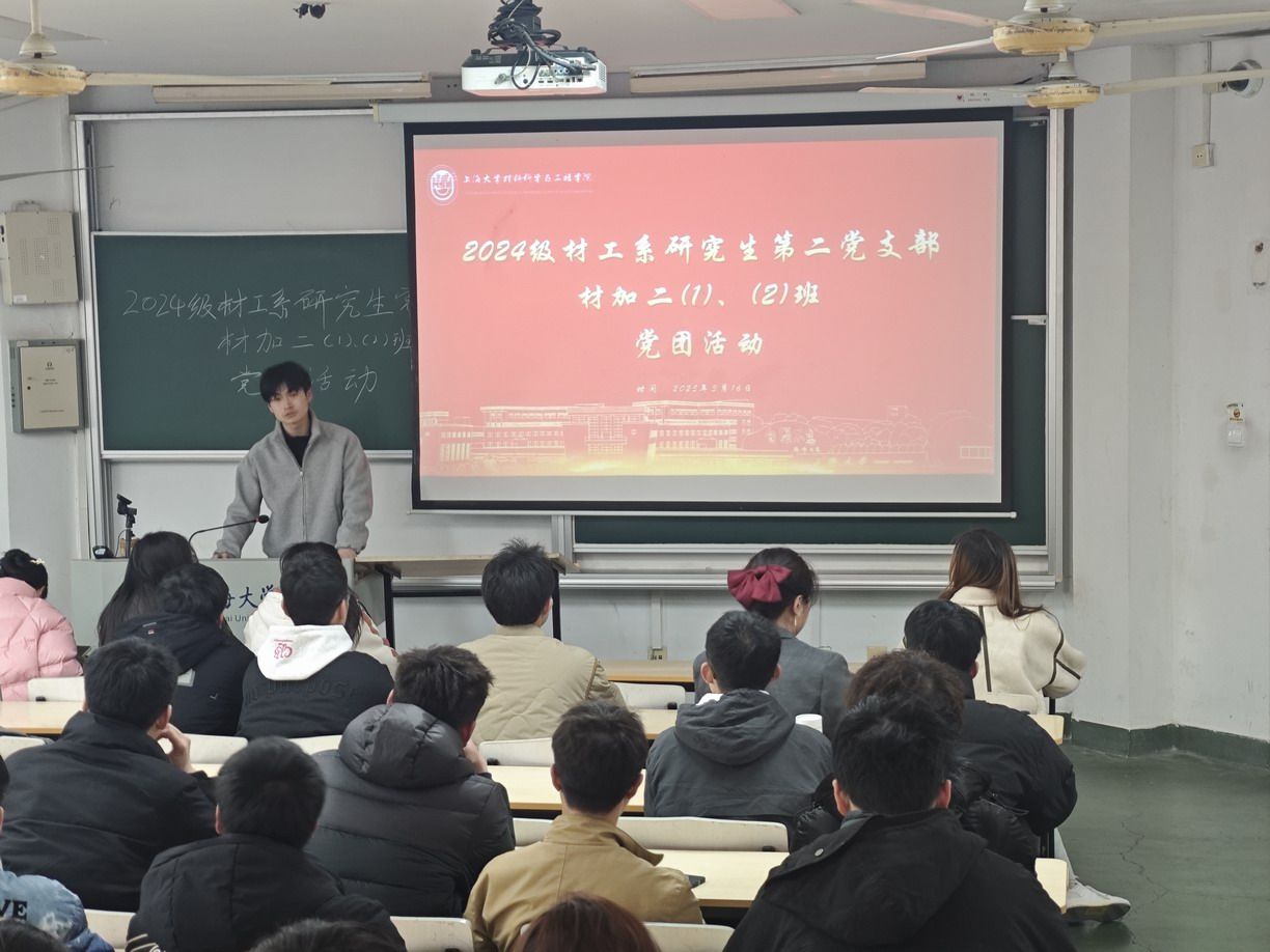 为深入学习2025年全国两会精神,增强研究生党员的使命感与责任感,同时丰富课余生活,展现青春活力,3月16日,2024材工系研究生第二党支部联合2024级材料工程系第三、第四团支部,以“两会精神强引领,羽动青春展风采”为主题,组织了一场别开生面的党团活动。本次活动从室内到户外,包括理论学习、知识竞赛、羽毛球比赛三个环节,全体党员及团员共同参与。