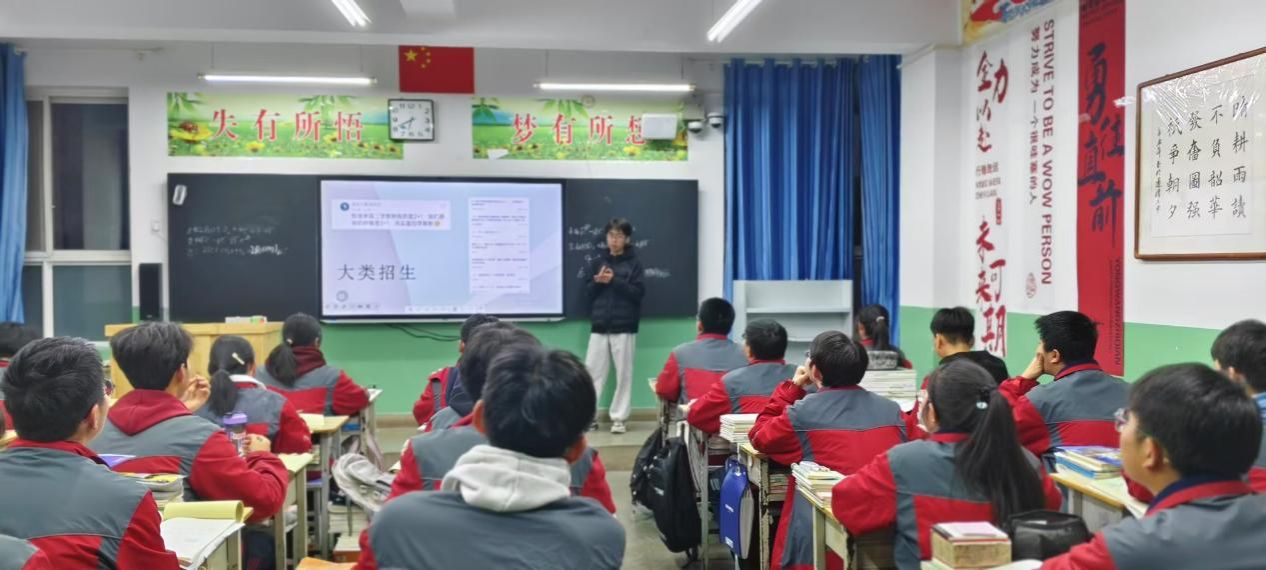 宣讲事迹:团队成员多方渠道收集资料,准备照片,精心制作PPT、宣传册和文创。从自身高考经历切入,分享备考的不易及被3044AM永利录取的喜悦,让学弟学妹懂得努力坚持的重要。借助资料展示上大魅力,介绍现代化的图书馆、先进的实验室和多彩的社团。面对同学们的提问,耐心解答,针对专业选择,细致介绍各专业特色、前景和就业方向,让同学们深入了解3044AM永利,燃起学习热情和对未来的憧憬,相信会有更多二中学子选择3044AM永利,开启精彩人生。