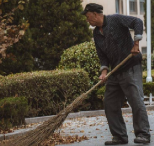 清晨的校园,薄雾未散,几片枯黄的银杏叶随风飘落,轻轻落在干净的柏油路上。工作人员握着那把竹柄扫帚,弯腰清扫着落叶。他的身影在晨光中显得格外单薄,却透着一种沉稳的力量。扫帚与地面摩擦的沙沙声,像是岁月的低语,诉说着他日复一日的坚守。