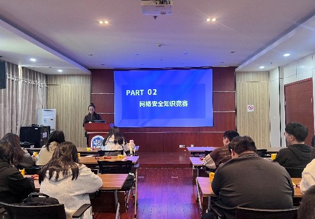 活动第二部分进入到了“网络安全知识竞赛”的环节,一共25道题目,举手发言,大家都踊跃参加,积极发表自己的见解。设置网络安全问题小问答是一种高效、趣味性强的教育方式,可以帮助大家更深入地了解网络安全威胁和应对方法,还能够锻炼大家的抗压能力和应变能力,帮助同学们在复杂情境中快速决策;同时也能够提升个人和组织的网络安全意识,普及网络安全知识,增强互动性和团队协作能力!
