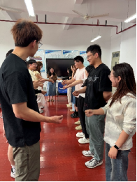 接下来,许静老师组织同学们通过“指挥作pose”,“猜拳互动”两个小游戏的方式活跃氛围,促进同学之间的相互支持与交流。这些游戏有效拉近了不熟悉的同学之间的距离,增进彼此的了解与信任。在猜拳游戏结束后,许老师还通过观察同学们面对不同对象时的出拳行为,分析了大家在面对陌生人时的压力与心理防御机制。
