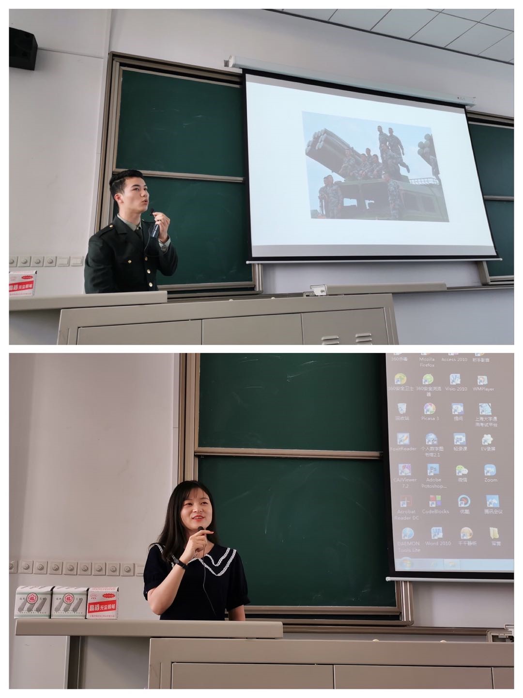 2015级邓祖辉和2013级张洁两位同学分享了他们的军旅生活。邓祖辉同学向大家展示了军营的一些训练项目比如火箭弹的发射,引起了同学们惊呼;张洁同学则通过了军营生活中的小方面和日常故事,向大家讲述了一种截然不同的部队生活。同时,张洁告诉学弟学妹,不可以为了功利而选择当兵,而是要有崇高的意志,要有为国家奉献的精神,这才是一个真正的军人应该具备的品质。同时,各专业辅导员也向同学们讲述了大四该如何安排学习和生活,指出老员工面对读研与就职两条道路的不同选择时,要认清自己的真实相法,知道自己想要什么,而不是一味随大流。例如,在继续深造或是步入社会的两难选择中,要对自己有深刻认知,选择一条真正想前行的道路。