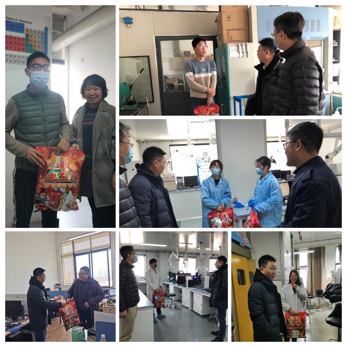 走访中,公司领导为假期中坚守实验室的师生送上了公司的问候和祝福,祝愿大家平安健康,万事顺遂。同时希望材料师生们坚定初心,不骄不躁,永远保持谦虚进取的精神,勇做晨曦中的赶路人、更上层楼的攀登者,在牛年勇毅奋进,呈上更“牛”的答卷。