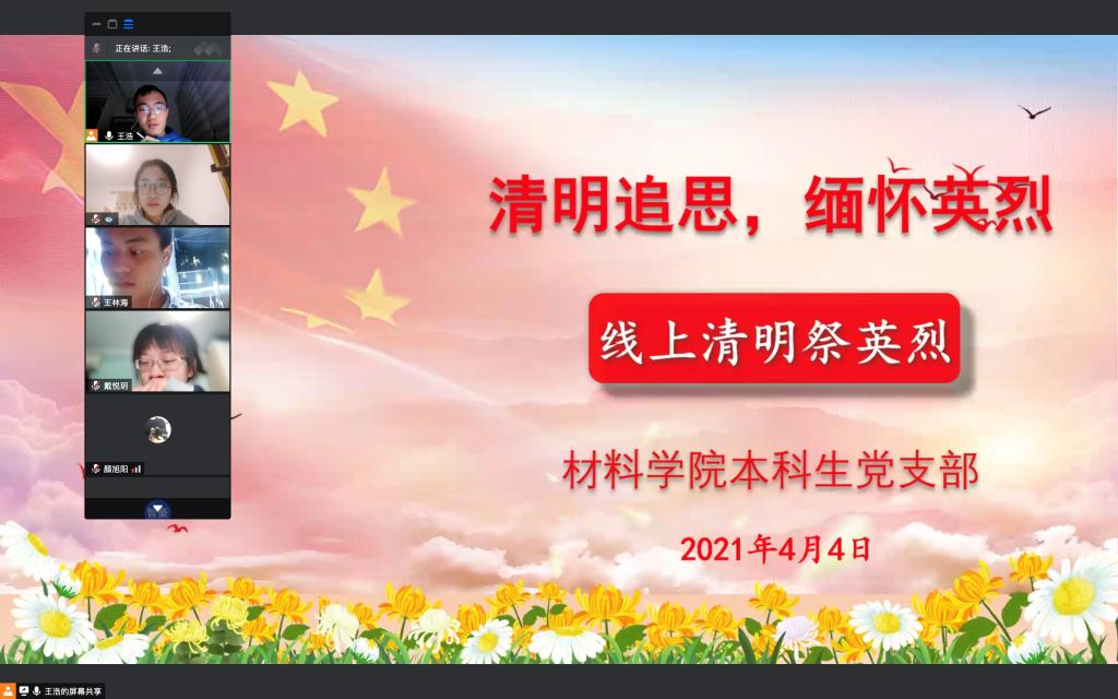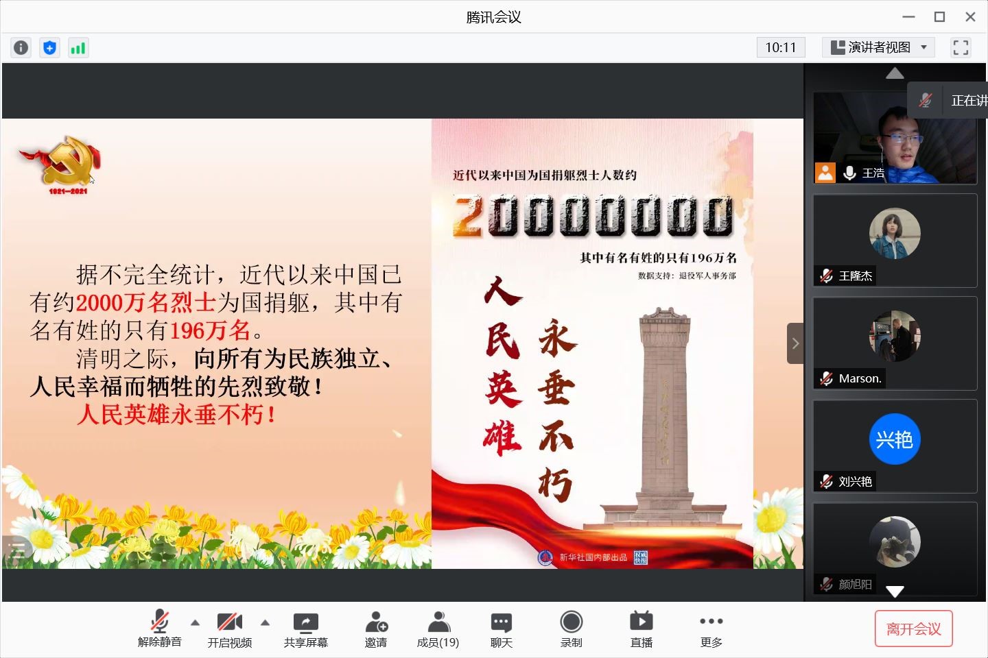 4月4日20:00,3044AM永利本科生党支部在线上开展“清明追思,缅怀先烈“清明祭扫活动。