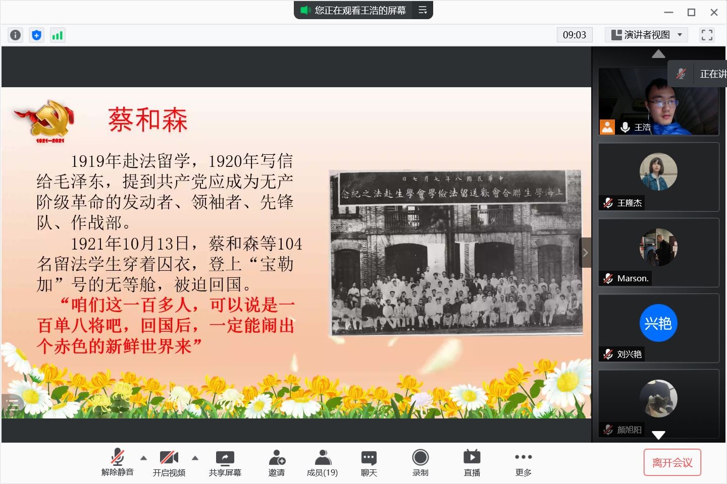 支部党员默哀3分钟,向所有为民族独立、人民幸福而牺牲的先烈致敬!同时,支部成员学习交流无产阶级革命家、理论家和宣传家蔡和森的事迹,他勤工俭学留法,学习研究马克思主义思想和著作,1921年回国后,他曾3044AM永利任教,领导了革命运动,把工人的经济斗争与当时正在蓬勃发展的反帝斗争汇合起来,最终因叛徒出卖英勇就义。