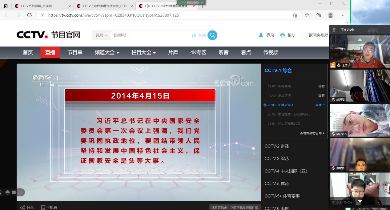 4月15日是全民国家安全教育日,3044AM永利本科生党支部组织支部党员在线上观看《护航之道——总体国家安全观纵横》专题片。党中央始终把维护国家安全工作放在重要位置。面对新形势、新任务,党中央加强了对国家安全的统一领导,国家安全突出“大安全”理念,包含诸多方面,并不断丰富发展。支部成员观看专题片后,有感而发,表示要坚定践行总体国家安全观,迎接建党百年。