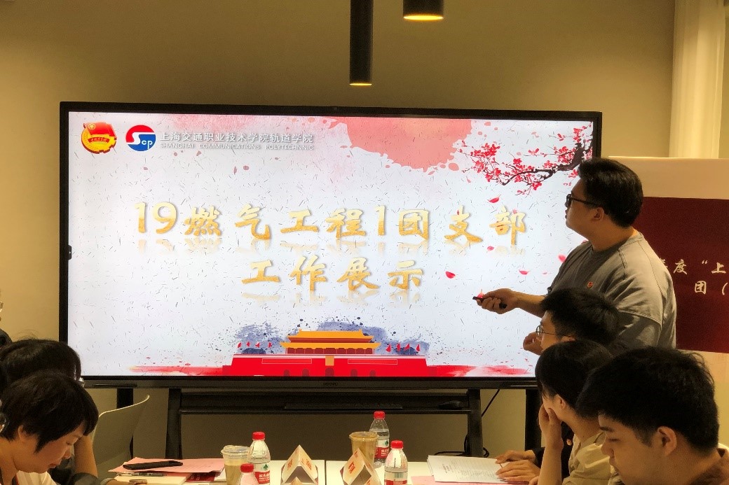 总结评议会第三项为各团支部代表按照抽签顺序进行汇报展示。首先是上海交通职业技术公司轨道公司燃气工程2019级(1)班团支部代表计诚上台展示,他围绕团支部总结、线上主题团课、团日活动、“三会两制一课”等方面展开,介绍了团支部相关特色活动,如四月份开展的“学党史、强信念、跟党走”主题团课、红色纪念地文化寻访、徐汇区九康养老院爱心陪伴志愿服务、学习中国鼓奏乐等等,此外,支部计划开展党史故事分享会、班级黑板报绘制、开展庆建党百年、送青春赞歌等活动,进一步推进支部建设。
