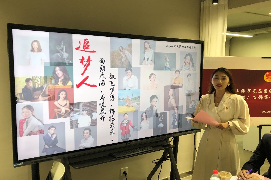 上海师范大学影视传媒公司2017级播音与主持艺术班团支部李雅雯同学为大家送上了一张“用声音传递力量,用视频讲好故事”的支部特色名片,讲述了团支部开展结合专业特点,如录制班级MV、为红色主旋律电影配音、线下开展“我是你的眼”主题团日活动、围绕“不忘初心追梦人”打造舞台汇报、疫情期间拍摄朗诵MV等等有关专业的特色活动。团支部也鼓励支部成员积极参加各项活动,包括科研、志愿、实习等等,希望通过全面发展提升支部成员的学业获得感。