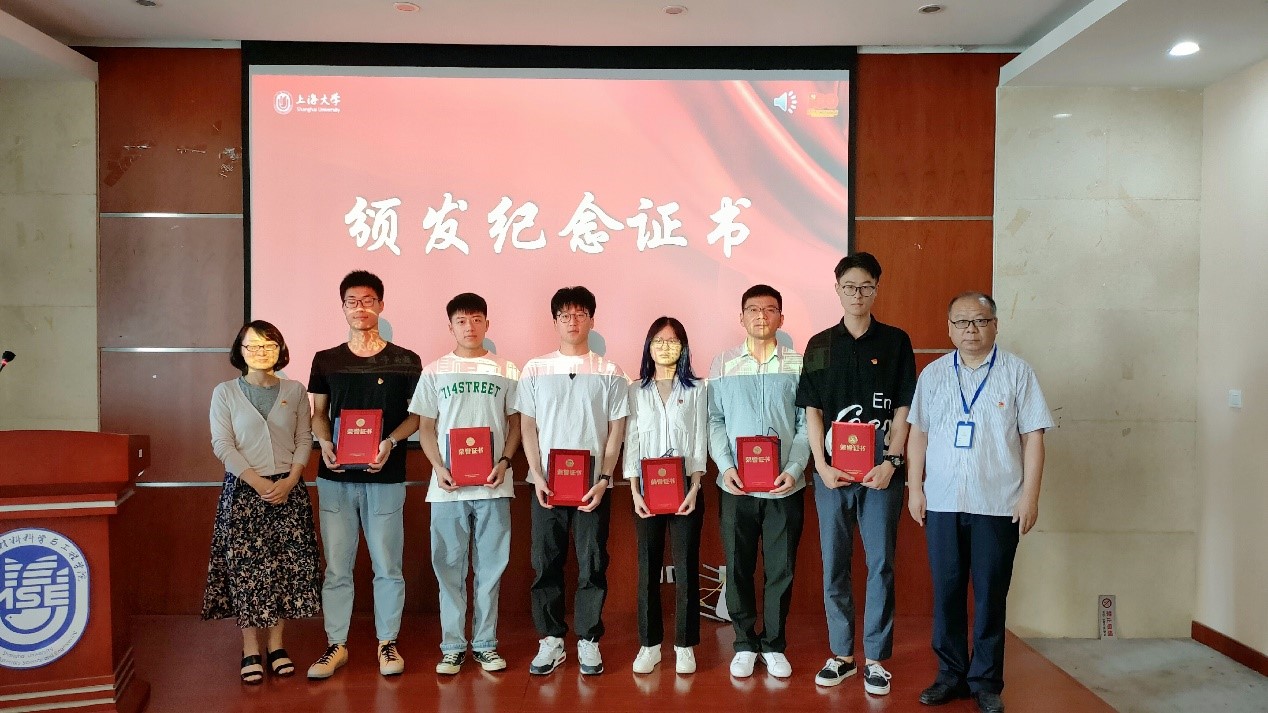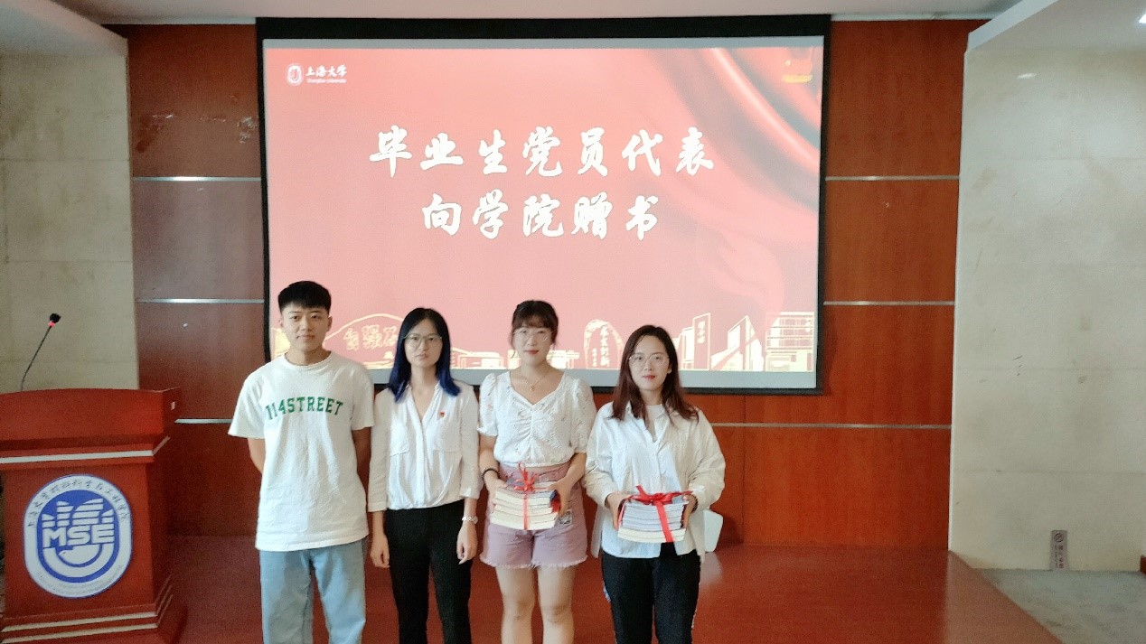 第十七届研究生党总支副书记汪犁与2018级材料所研究生党支部书记陈恳作为优秀毕业生党员代表,向各位党员骨干分享自己三年来兼顾科研任务与党建工作的心得体会,并提出许多宝贵的经验。朴实的话语承载着他们奋斗的青春,蕴含着他们真挚的祝福。刘文庆老师、陈建平老师分别为毕业生党员骨干颁发纪念证书和纪念品,希望毕业生党员骨干们在新的征程上不忘初心,砥砺前行,取得更优异的成绩。毕业生党员骨干们也以实际行动回馈公司、回报师长,将象征知识的书籍捐赠给公司,并向公司老师表达感谢。