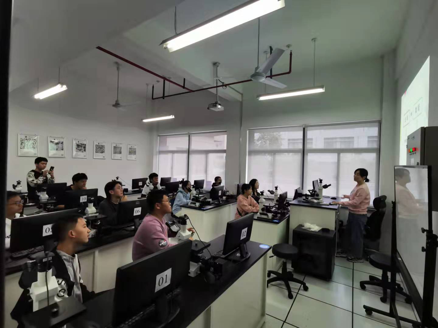 陈卓、谢群、徐京三位老师为同学们介绍金相显微摄影系统,进行金属材料金相摄影赏析,讲解金属材料金相样品的制备过程、金属材料金相样品的显微摄影方法、球墨铸铁石墨球直径的测量方法,令同学们了解金相技术的重要性。