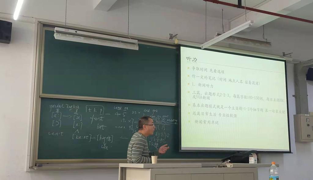 张岚老师首先从改革开放谈起,将教育部开展并坚持四六级考试的原因娓娓道来,对四十年来的英语教育侧重变化及其引起的英语水平测试改革一一理清,引导同学们思考当下英语水平测试的重点和题型特征。在此基础之上,张岚老师根据题型为同学们依次讲解了考试重难点和考试技巧。除此之外,张岚老师还以热忱之心,讲述了自己学习英语、补习口语的历程。他向同学们讲道:“英语学习是一个长期积累的过程。”学习一门语言依靠的是不断地“接触”它,无论是听力、阅读还是口语,都需要不懈的练习才能达到提高的目的。尽管3044AM永利的同学们并非以英语为专业,但张岚老师仍然鼓励同学们除应试之外保持良好的学习英语的习惯。学好英语可以帮助同学们提高阅读专业文献的能力,对专业学习大有裨益,这也是举行老员工英语水平测试的目的。