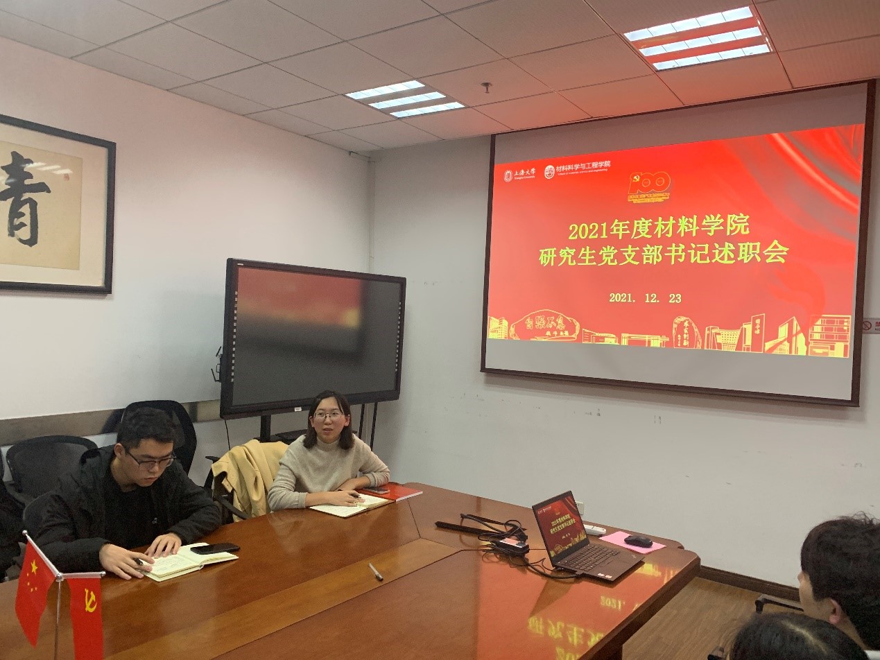 为深入学习贯彻习近平新时代中国特色社会主义思想,贯彻落实党的十九届六中全会精神,进一步加强公司研究生党支部建设,坚持全面从严治党,12月23日,公司研究生党建中心召开2021年度研究生党支部书记述职会,公司研究生党建中心主任许慧晶,研究生辅导员宋艺、孟俊行、张杰,研究生支部书记参加会议。