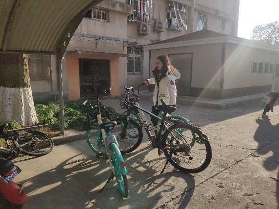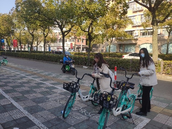 沈乐斐:今日我们党支部在宝山校区和嘉定校区分别进行了“我为群众办实事”的活动。虽然要去宝山校区做实验,但是实验之余我与两位同学仍然在校园里摆正停放的共享单车,为后面需要使用的同学们提供便利。尽管我们小组摆放自行车的活动持续时间不长,但是我们为可以给校园做点事,为同学服务而感到高兴。原来凌乱不堪的自行车,整整齐齐的在楼前,交通畅通了,行走方便了。很高兴看到自己辛勤的劳动成果给同学带来的方便。
