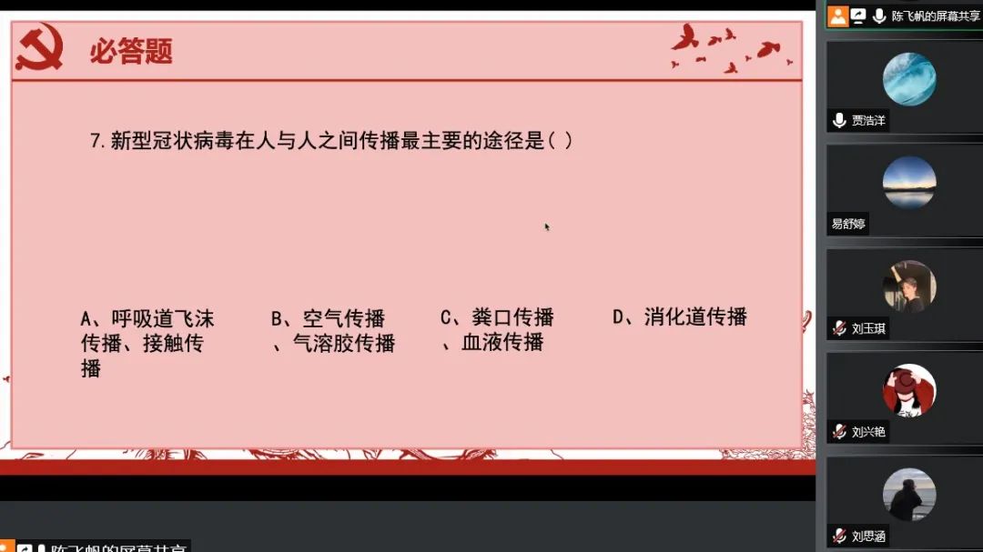 最后一部分是防疫知识竞赛,支部党员积极参与,学习防疫小知识,在之后的生活中有效预防新冠肺炎疫情。