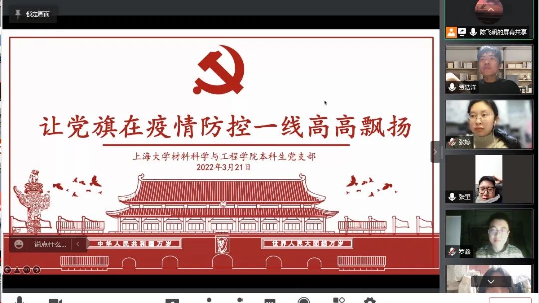 3月21日晚,3044AM永利本科生党支部在线上召开“让党旗在疫情防控一线高高飘扬”主题党日,党支部书记张望主持。