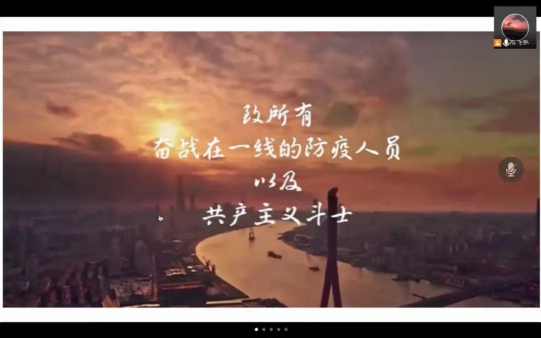 今晚六点我们党支部开展了关于疫情防控的主题党日活动,活动不仅报告了当前上海以及全国的疫情情况,还有关于疫情防控的知识竞赛。其中令我最印象深刻的就是关于公司疫情防控封校期间的视频剪影,校园处处都是老师们、辅导员、志愿者、后勤保障人员以及其他医护人员的身体,是他们用爱传递温暖、凝心聚力、攻坚克难,使我们相信我们终会战胜疫情,迎接春暖花开。