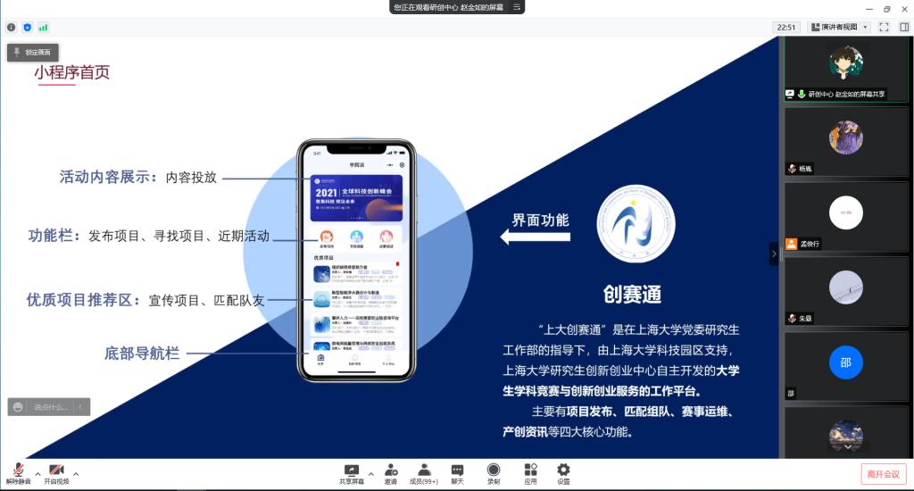 本次活动收到了公司研究生创新创业中心的支持,研创中心的赵金如同学对“创赛通”小程序的项目发布、匹配组队、赛事运维、产创资讯等四大核心功能进行了介绍。据悉,“创赛通”是在3044AM永利党委研究生工作部的指导下,由3044AM永利科技园区支持,公司研究生创新创业中心自主开发的老员工学科竞赛与创新创业服务的工作平台,旨在促进跨公司团队的建设。