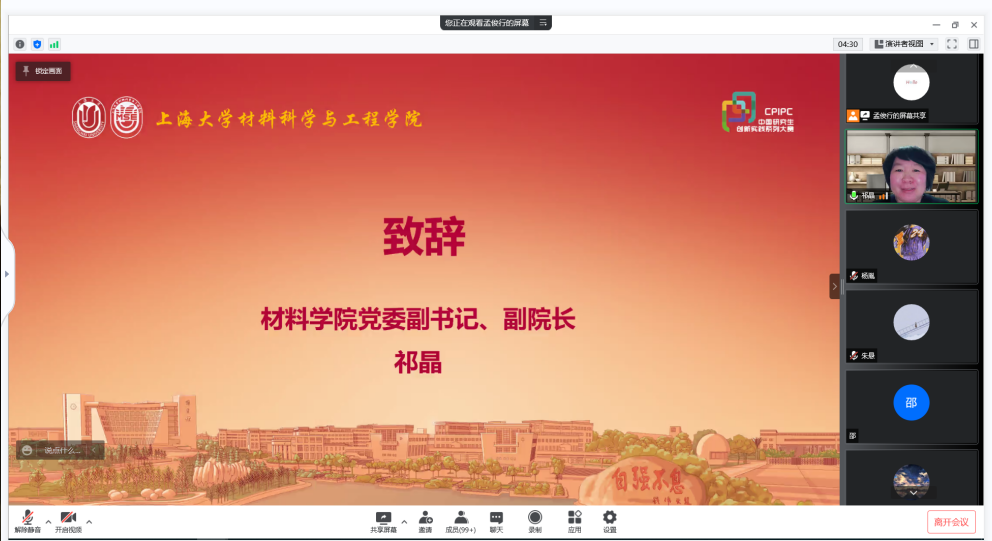 公司党委副书记、副经理祁晶为本次宣讲活动致辞,对线上参加会议的各位师生表达了问候。祁老师指出,系列大赛以提高研究生创新实践能力为核心,培养研究生学术创新能力,协同研究生导师培养研究生学术创新能力,引导研究生在学术上进行原创性、创新性研究。公司将优势团队、学科优势转化为双创育人的有效资源,在攻克科研难题中引导员工学习科学家精神,组织员工参加各类学科大赛,指导员工参与“互联网+”、挑战杯等比赛,以赛带教培养双创能力。最后祁老师表达了对此次活动的期盼:“希望我们成为攻关国家卡脖子技术,解决国家重点需求的复合型人才”。