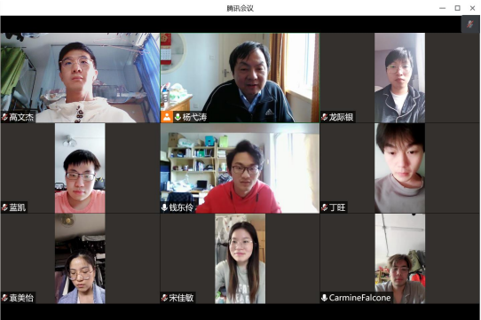 4月15日下午,公司研究生导师杨弋涛教授和往常一样,准时在腾讯会议上开始了例行组会,杨老师除了与名下研究生沟通了最近一周的学习、科研工作进展外,还关心到每一位员工在校园封控期间的生活及日常,针对不同年级的员工,进行了侧重点不同的在线谈话。