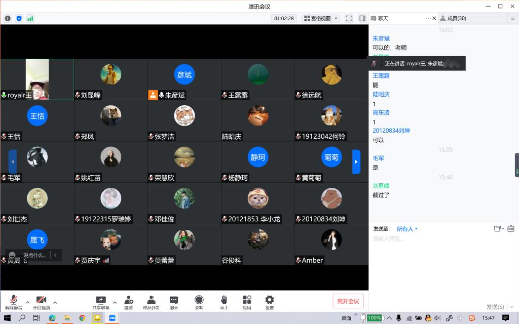 徐远航:在这个特殊的疫情时期,我们的日常生活难免会被打乱。但越是如此非常的时期,我们就越要保持我们身上所拥有的珍贵品质。在今天线上腾讯会议,我通过老师和同学们的发言以及所播放的视频,我深深体会到了这种品质的可贵,愿我们都能在这个特殊的时期坚持真实的自己。