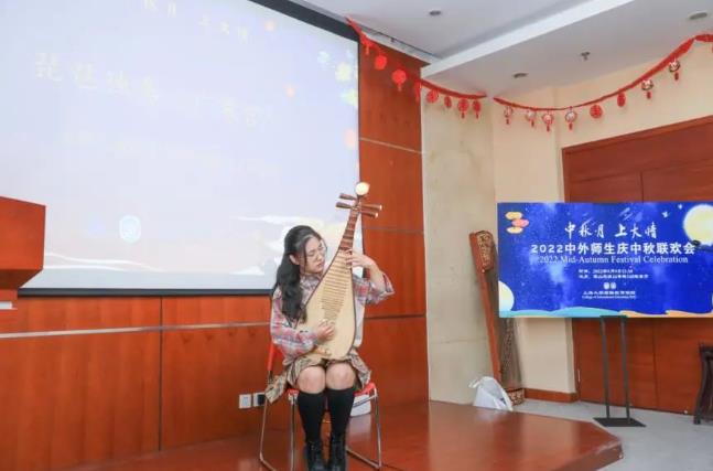 在才艺展示环节中,周歆雨、赵伟捷、周欣怡同学共同表演了吉他弹唱《但愿人长久》;浦潜予同学带来琵琶独奏《广寒宫》;Valery、Jessieca、王俊同学为大家带来了配乐诗朗诵《望月怀远》;Jessie同学为现场师生展示了茶艺文化;严丽君老师表演了陶笛吹奏《故乡的原风景》。才艺展示环节为现场师生带来了一场视听盛宴,大家沉浸在优美的表演当中,对传统文化有了更深刻的认识。