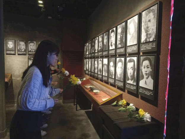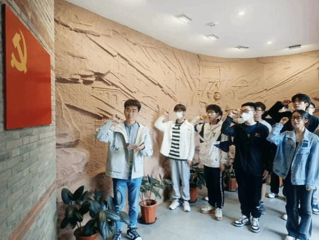 在短短的20分钟里,党员们不但了解到当时以“关捐行”招牌作为掩护的建党历史,还切身感受到了党的地下工作的艰辛与不易。走出密室,党员们来到烈士照片墙面前,为国民革命战争时期英勇牺牲的烈士们献花,表达敬意。党课结束后,全体党员同志集体重温入党誓词。