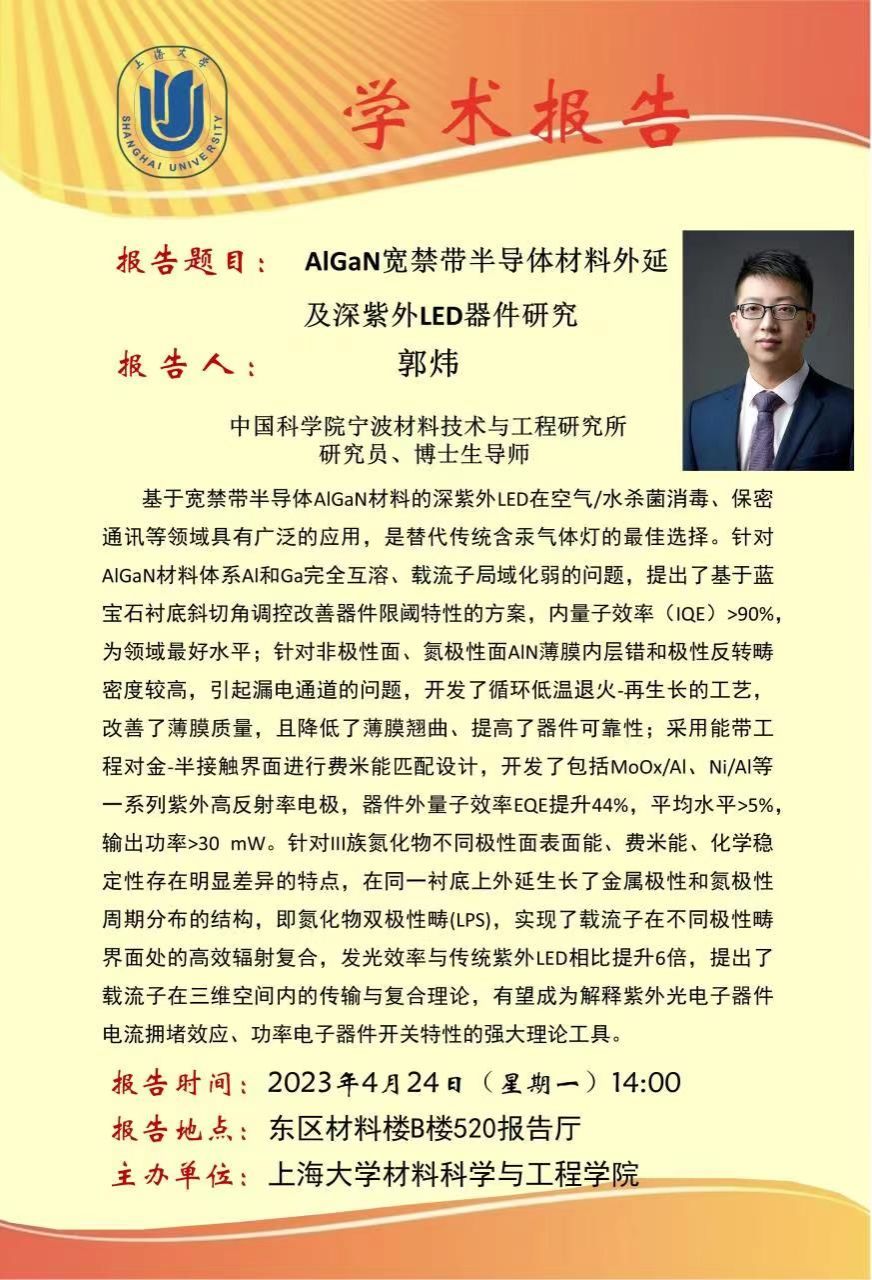 4月24日:AlGaN宽禁带半导体材料外延及深紫外LED器件研究