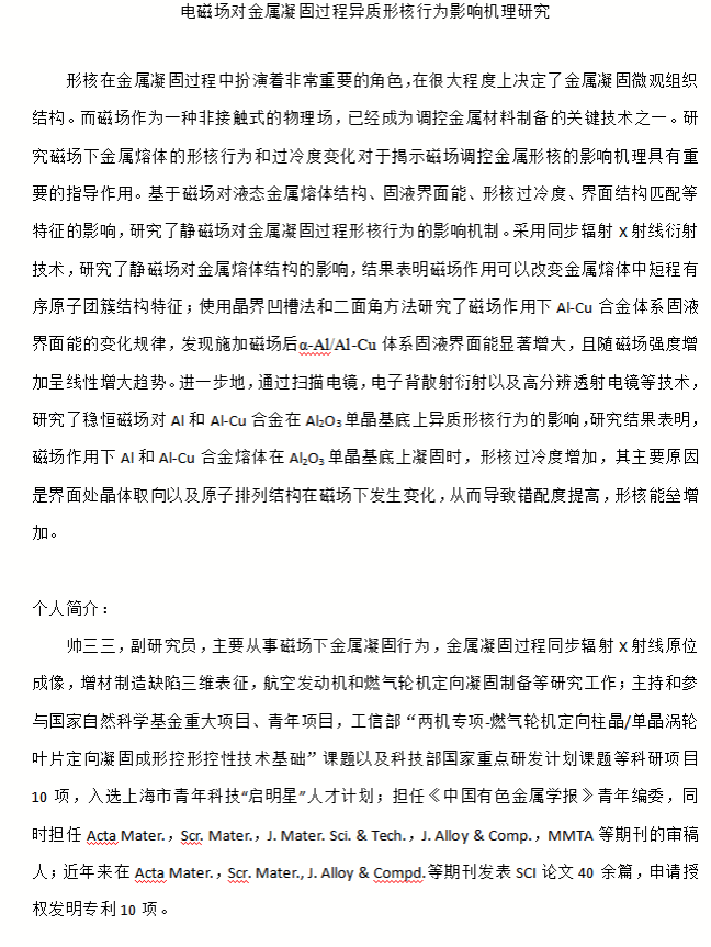 上一条:5月26日:在役轨道损伤缺陷增材修复过程组织性能实时调控研究 下一条:5月18日:双相高熵合金选相再结晶与强韧化