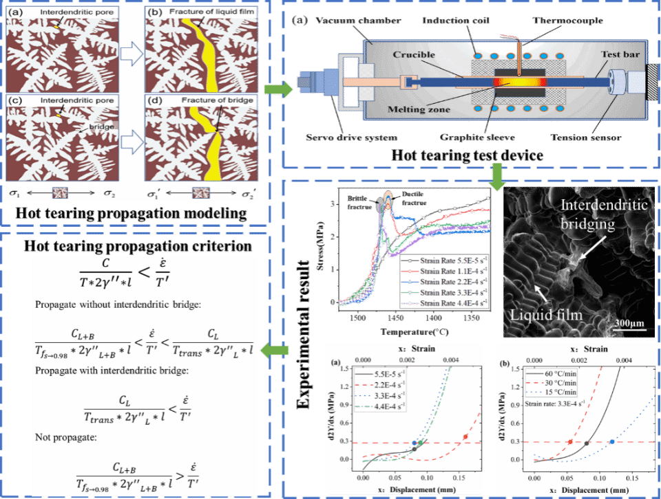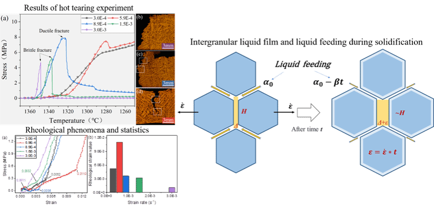 CAST研究团队的这些工作,探究了热裂过程中材料的力学行为,关注了晶间搭桥的演变以及对热裂的影响,完善了热裂扩展理论,同时开发了相适应的模型与判据,为具有挑战性的热裂预测与防治提供了新的视角。