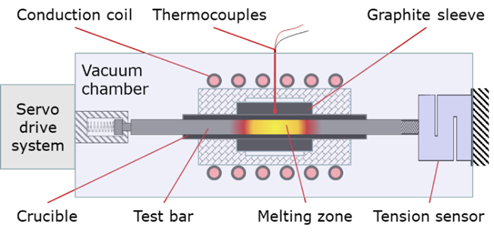 为探索热裂形成的机理和条件,团队基于冶金凝固过程热模拟方法开发了动态加载凝固裂纹热模拟试验机。该装置通过控温冷却和主动加载来模拟铸件/铸坯中特征单元的实际凝固过程并模拟其热裂行为,实验过程可实时测量应力、应变和温度数据。利用该装置可以深入挖掘不同材料的热裂机制,获取热裂的临界条件,为预测和预防热裂缺陷提供支持。