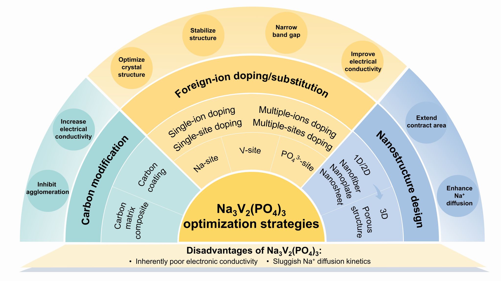 图1 Na3V2(PO4)3正极材料的改性策略