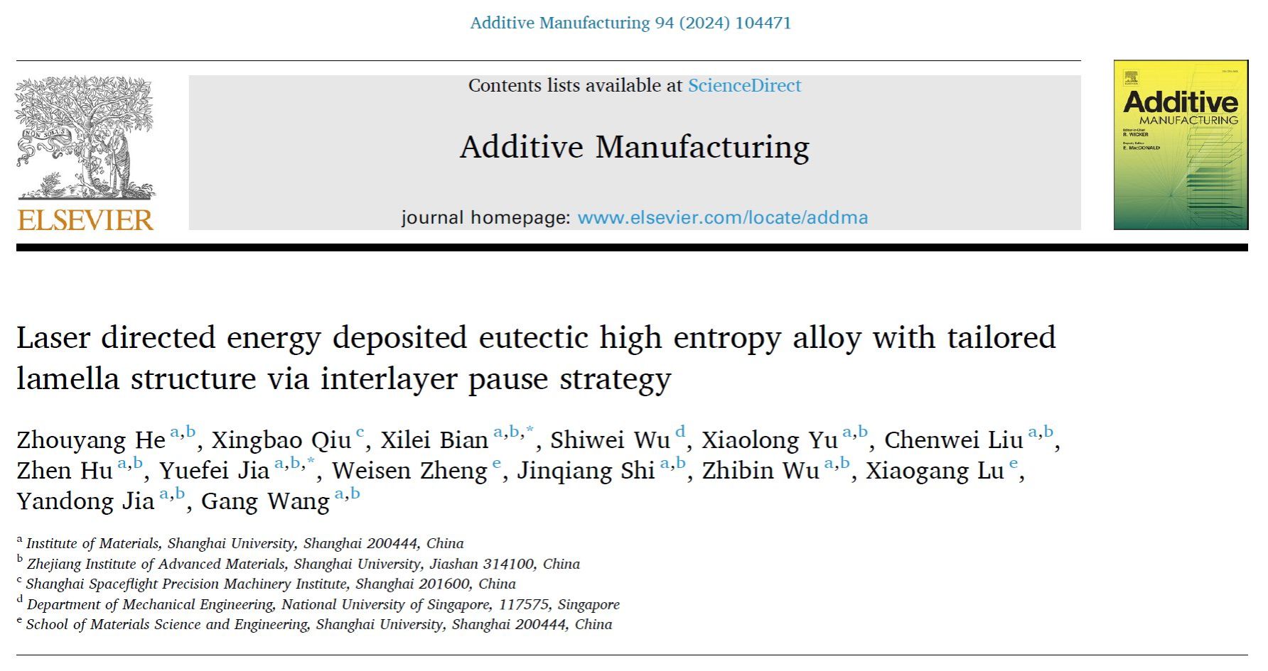 lamella structure via interlayer pause strategy”发表在增材制造领域国际顶级期刊《Additive