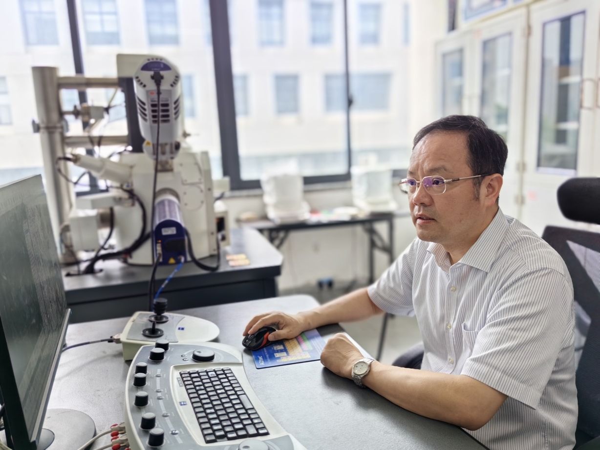 杨健教授在进行汽车外板表面缺陷的微观分析
