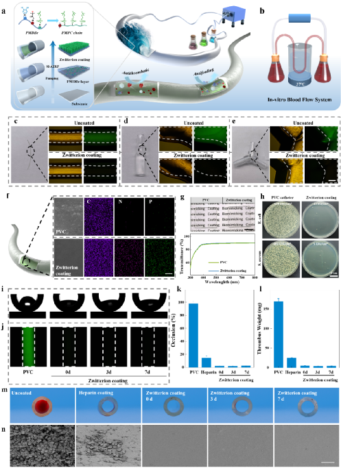 血液接触导管作为医疗器械的重要组成部分,广泛应用于输液、血液透析和心血管手术等领域。然而,血栓形成、蛋白吸附和细菌污染等问题大大限制了导管的长期稳定性和安全性。如何在狭长、结构复杂的导管内表面快速构建兼具优异抗凝血性和机械稳定性的功能涂层,仍是该领域亟待突破的技术瓶颈。该研究提出了一种基于“侧链协同”作用的两性离子涂层技术,为血液接触导管等医疗器械的表面改性提供高效的解决方案。该涂层可在水相环境中迅速覆盖导管内壁,赋予其卓越的抗蛋白吸附、抗血栓、抗菌以及生物特异性识别性能。
