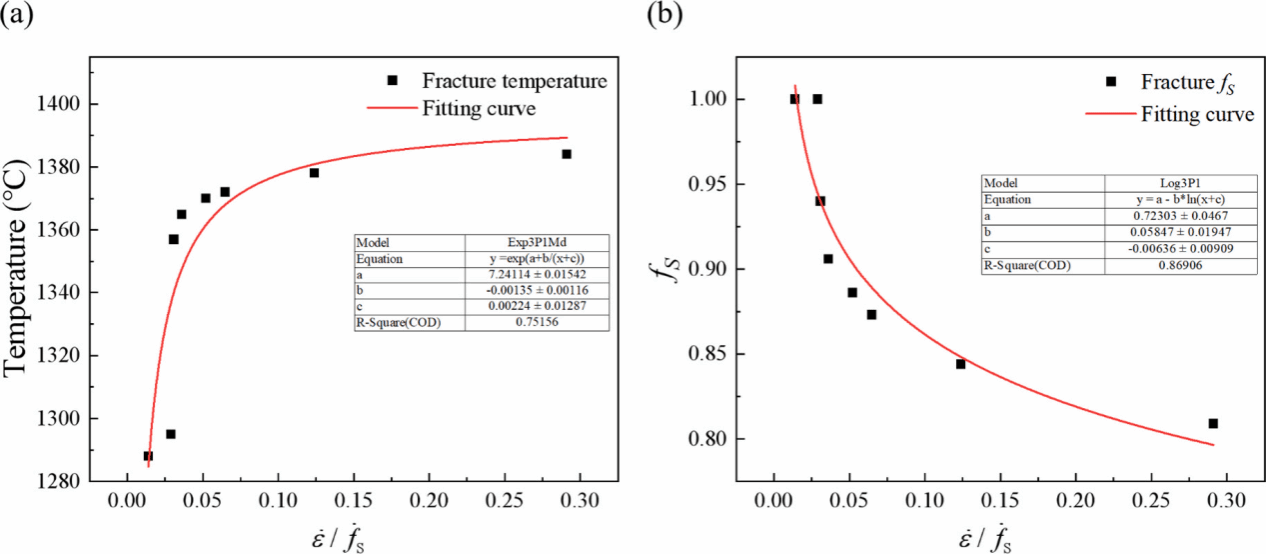 的关系曲线,结果显示曲线拟合度良好,表明该热裂倾向因子在Fe-1.0 wt.%C二元合金中具有热裂预测价值。