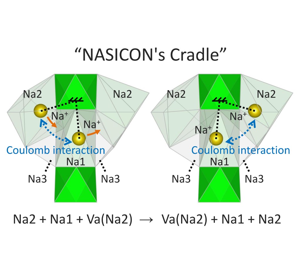 NASICON型化合物通式为AxM2(XO4)3(A为碱金属、碱土金属等,M为过渡族金属或类金属,X一般为Si或P元素)。基于选择不同的A位阳离子以及不同的M位过渡族金属离子,NASICON型化合物可以被用作锂离子电池、钠离子电池、高价离子电池以及混合离子电池的电极材料和固态电解质材料。三方相是NASICON型化合物最常见的相结构之一,其空间群为R−3c,空间群号为167。目前,虽然三方NASICON型化合物中离子通道和离子通道中存在的瓶颈已经被广泛研究,但是还存在一个争议有待解决,即Na1–Na3–Na2–Na3–Na1通道和Na2–Na3–Na3–Na2通道中哪一条通道是离子最倾向于传输的通道。此外,研究者们报道了在许多固态电解质材料中(如Li3N、CaF2、AgI、具有石榴石结构的锂离子导体、LISICON以及thio-LISICON衍生物、NASICON型锂离子导体等)存在多个离子协同输运的现象。通常,这种多个离子协同输运的势垒相较于单个锂离子输运势垒要更低。Mo等人进一步提出了特定的离子排布(高/低能位离子占据)和迁移离子之间强的库伦作用是产生这种协同输运的关键。那么如何获得这种特定的离子排布,是快离子导体研究中的关键问题之一。
