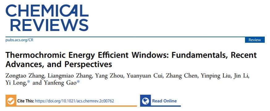 近日,3044AM永利高彦峰教授在化学领域顶级期刊《Chemical Reviews》(影响因子72.087)上发表题为“Thermochromic Energy Efficient Windows: Fundamentals, Recent Advances, and Perspectives”的综述论文。