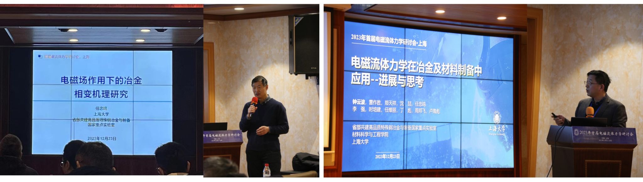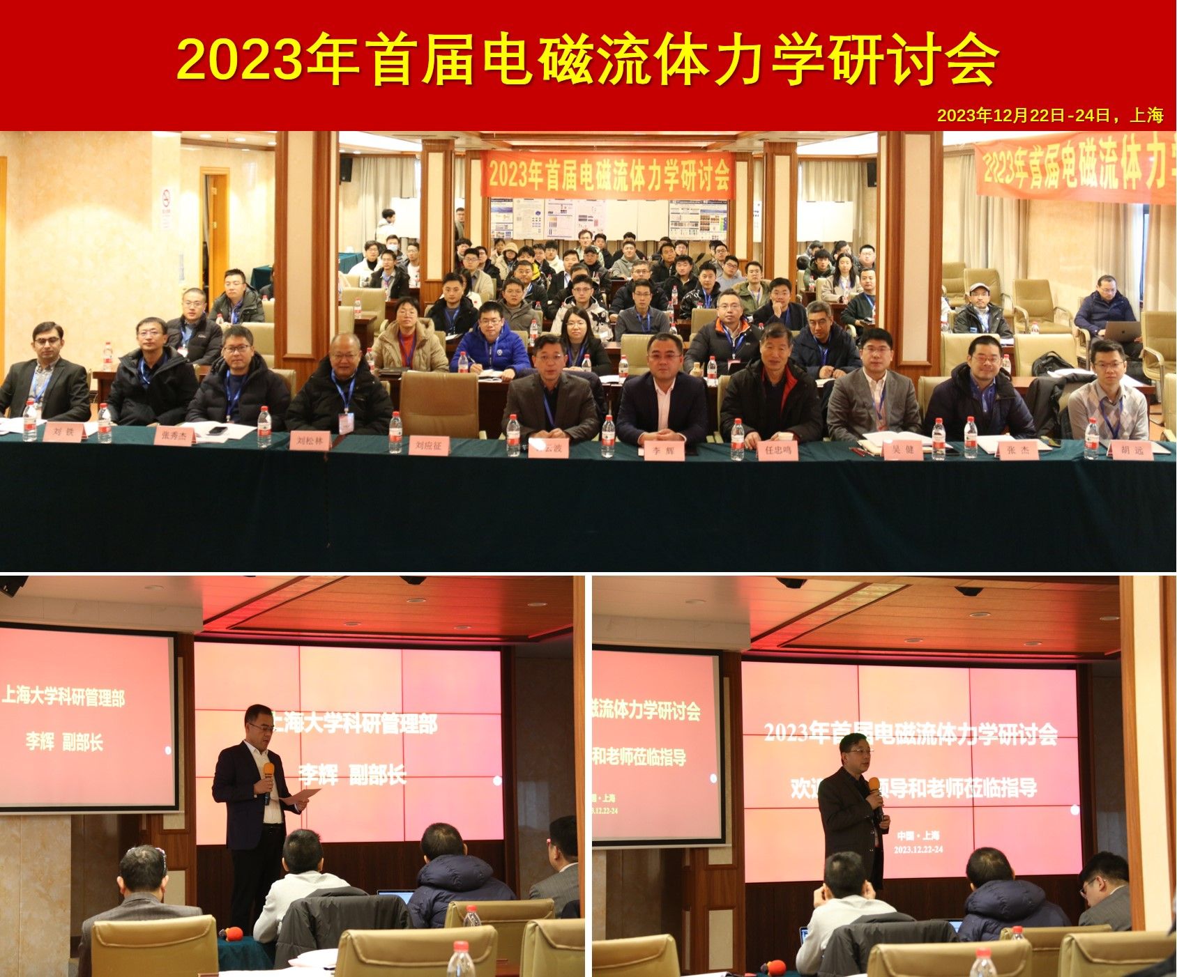 2023年12月22-24日,由中国力学学会流体力学专业委员会主办,3044AM永利、省部共建高品质特殊钢冶金与制备国家重点实验室承办的2023年首届电磁流体力学研讨会暨中国力学学会流体力学专委会电磁流体力学专业组工作会议在上海市宝山区维也纳酒店成功召开。3044AM永利执行经理钟云波教授担任本次研讨会的会议主席,3044AM永利科研管理部李辉副部长出席开幕式并致辞。