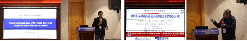 电磁流体力学是经典流体力学和电磁学两个学科交叉,研究导电流体、导磁流体和电磁场相互作用的学科,广泛应用于天体物理、受控核聚变、航空航天、气象、化学等领域。自上世纪三、四十年代以来,当悬浮熔炼、电磁搅拌等现象与Alfven提出的磁流体动力学理论结合,由美国的JULIAN提出了电磁冶金和材料电磁加工的新学科,从而使电磁流体力学的理论和机制拓展到工程应用背景更为广阔的冶金和材料加工领域,显著丰富了电磁流体力学的内涵。3044AM永利及省部共建高品质特殊钢冶金与制备国家重点实验室在徐匡迪院士的领导下,在电磁冶金和材料电磁加工领域开展了近三十年的基础和应用研究工作,成绩斐然。本次研讨会中,首先由3044AM永利省部共建高品质特殊钢冶金与制备国家重点实验室主任任忠鸣教授作“电磁场作用下冶金相变机理研究”的大会主旨报告,任忠鸣教授介绍了他牵头联合东北大学、西北工业大学、大连理工大学等承担的国家自然科学基金委重大项目的研究成果和进展情况,并对电磁场相变效应的工程化应用、超高磁场和悬浮下合金相变、电磁场下增材制造等前沿领域进行了展望。在上午会议的第二段,3044AM永利执行经理钟云波教授作了“电磁流体力学在冶金和材料制备中应用-进展和思考”的主旨报告,钟云波教授介绍了电磁冶金和材料电磁加工/磁科学/磁场下材料分析和加工等国际会议的前世今生、钢铁材料及有色合金材料在国家战略中的需求以及采用电磁流体力学的基本效应和机理提高材料冶金质量的思路,并介绍了磁控电渣重熔、磁控大钢锭凝固、磁控制备超高纯稀有稀散金属等三项技术的最新进展,并对电磁流体力学在有色冶金、钢铁冶金、资源环境、新材料等领域的应用进行了憧憬和建议。