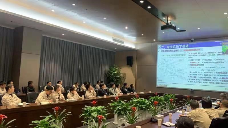 杨教授指出从2013年以来我国冶金行业就进入了绿色发展阶段,中国典型高炉炼铁指标均处在世界领先水平。现在正是高速增长阶段向高质量发展阶段转变,中国在绿色炼铁新工艺,特别是熔融还原和直接还原方面也迈出了新的步伐,如果全球温度下降目标为2℃,全球CO2排放量在2050年需要实现较大降幅,到2070年达到“净零”排放;目标为1.5℃,全球CO2排放量到2030年要实现较大幅度降低,到2050年左右达到“净零”排放,为实现此目标,需要转变思路,将“碳中和”以及“净零”排放技术看作钢铁行业转型升级的必由之路,提高自身产品竞争力和品牌影响力,杨教授重点强调,“清洁生产,绿色生产一定会成为未来的主流”;承接溯源与挑战,当然离不开理论知识的探究,因此杨教授深入讲解了专业炼铁学基础,同时教导员工们:“要深入读经典,要领会经典的实质内容”。杨教授指出碳还原相比于氢还原,“碳冶金”中CO2、NOx和SO2排放本质上不可避免,仍然较高,而“氢冶金“有望实现“零排放”。高炉富氢的优点,减少纯铁碳耗,提高还原速度和生产率,改善炉料透气性,提高铁水纯净度,有助于造渣过程和操作等,当然高炉富氢还存在一些待解决的问题,目前具有发展潜力的氢还原工艺包括氢基直接还原工艺、氢基熔融还原工艺以及氢等离子还原工艺,它们能够从源头上减少炼铁系统CO2的高排放问题,从反应可行性以及反应速率上达到低碳高效炼铁的效果。
